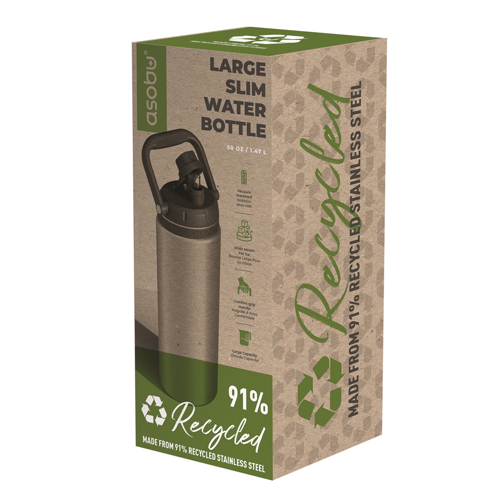Stay hydrated with our new ASOBU Canyon Eco-TMF7 – made from 91% recycled stainless steel! With a large 50 oz capacity, it’s perfect for keeping you refreshed all day long. Despite its size, the ASOBU Canyon is a breeze to carry, thanks to its comfortable, soft grip handle. Plus, drinking is hassle-free with the built-in pop-up straw—no need to tilt or turn it upside down.