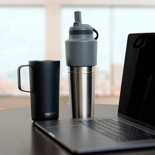 Simplify your life with the ASOBU Twin Pack – a unique combination of bottle and mug in one! Enjoy cold drinks from the insulated stainless steel bottle and sip hot beverages from the mug. For easy transport, the bottle conveniently slides into the mug and is cup-holder friendly. Perfect for the office, school, travel, or outdoor adventures, this versatile, dual-purpose design is ready for any situation.